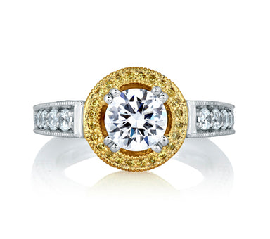 Two Tone Diamond Encrusted Milgrain Engagement Ring