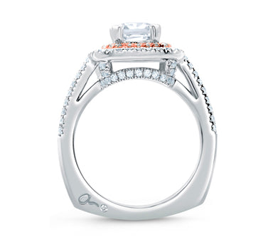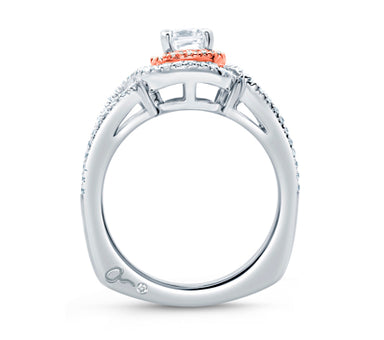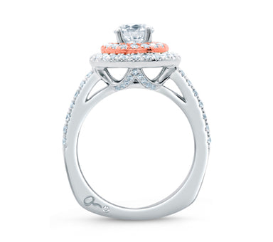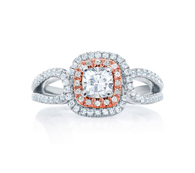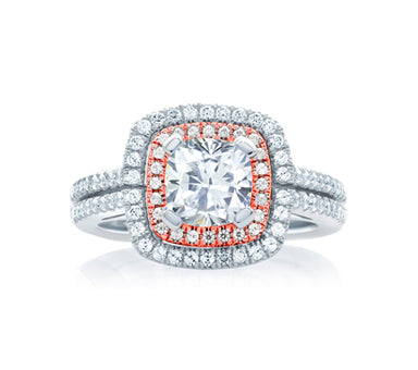 Double Halo Cushion Frame Rose Gold Diamond Engagement Ring