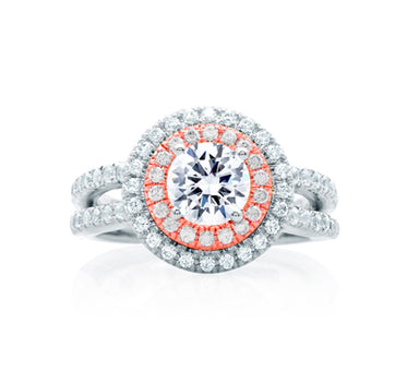 Double Halo Rose Gold Diamond Split Shank Engagement Ring