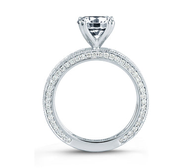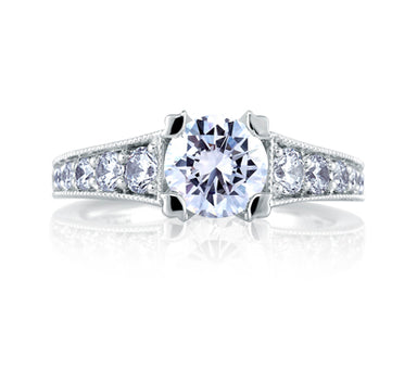In 1892 Abraham Jaffe set up shop on Maiden Lane in downtown New York City and created a brand we have come to admire as A. JAFFE. Shop Mulloys A. JAFFE collections. Ajaffe continues to stand for the same superior standards of quality and innovation that have gone into each of our bridal rings for over 125 years. The A.JAFFE Signature Shank is more durable and more comfortable than a traditional round shank. The extra weight from the metal helps balance your center stone, preventing the ring from turning on the finger, so your customer's diamond is always upright and cantered. A. Jaffe’s moder innovation has revolutionized the Engagement ring design and how they are comfortably worn today. Check out Mulloys Fine Jewelry to learn more about which A. Jaffe ring you want on your finger. Contact a Mulloys Fine Jewelry Specialist to assist in your Engagement ring order - 877-Mulloys or 877.685.5697 and ask to talk with a Mulloys A. Jaffe Expert.