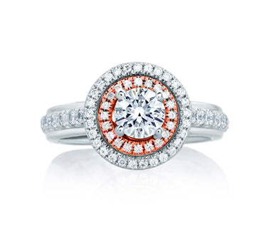 A.JAFFE ART DECO DOUBLE HALO ROSE GOLD DIAMOND PAVÉ ENGAGEMENT RING 0.53 (not including