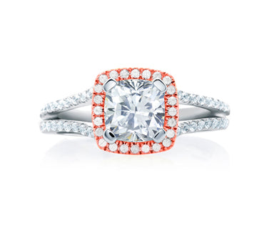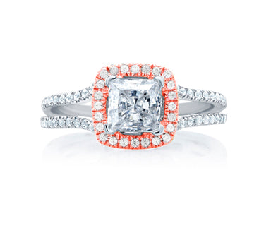 Center of My Universe Princess Cut Rose Gold Diamond Halo Engagement Ring