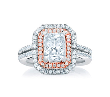 Double Halo Emerald Cut Rose Gold Diamond Engagement Ring