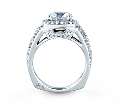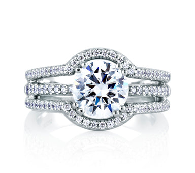 Architectural Three Row Halo Engagement Ring