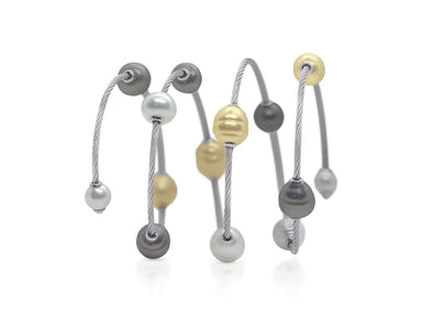 Grey cable with black, white, and yellow south sea cultured pearls.