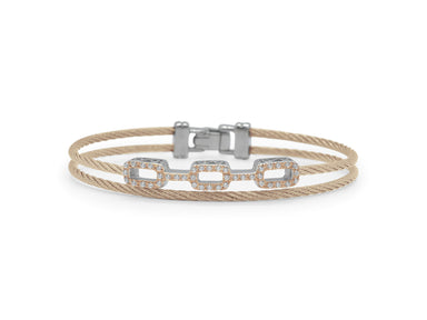 White stingray cuff with Rose stainless steel cable borders. Connected to 3 rows of open cables above with a center station of diamonds. 0.27 total...