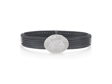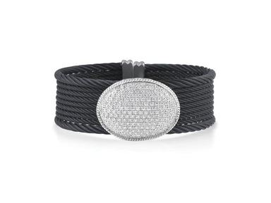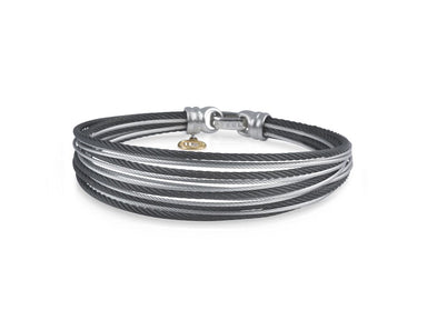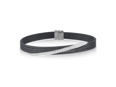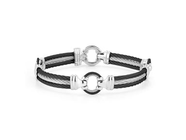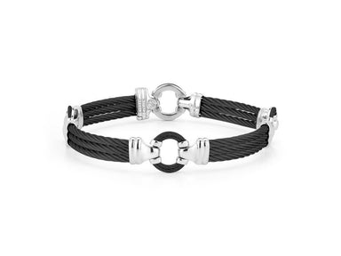 Alor Black cable 5 row (2) 2.5 mm & (3) 2.0mm, 18 karat White Gold, 0.97 total carat weight Diamonds and stainless steel. Imported.