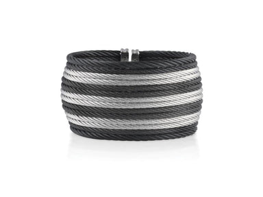 Alor Black cable 7 row 2.0 mm & 2 row 3.0 mm, 18 karat White Gold, 1.28 total carat weight Diamonds and stainless steel. Imported.