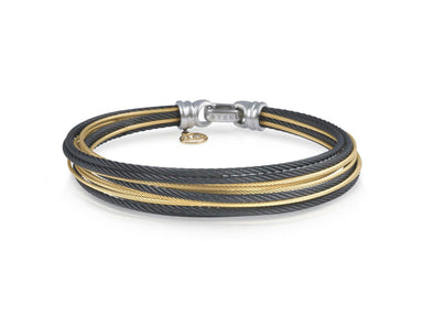 Alor Black cable and grey cable 3 row 2.5mm, 18 karat Yellow Gold with stainless steel. Imported.