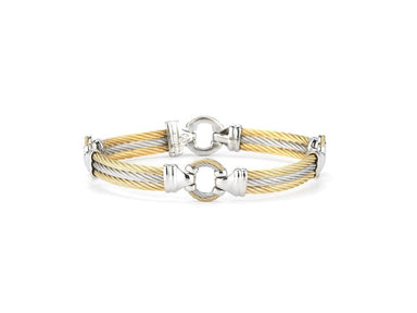 Alor Grey cable and yellow cable 3 row 2.5mm, 18 karat Yellow Gold with stainless steel. Imported.