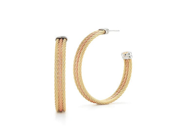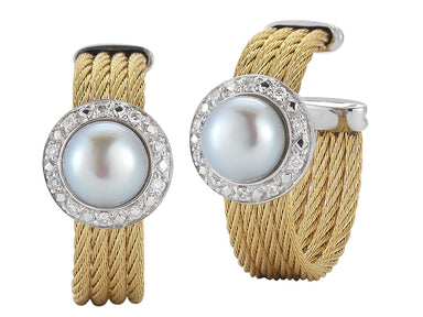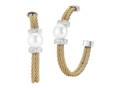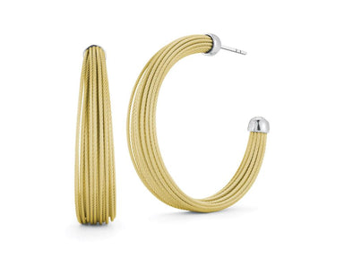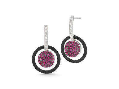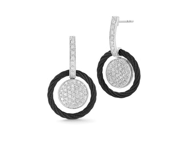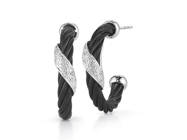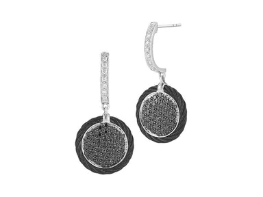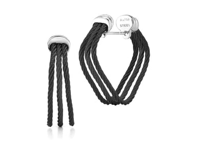 Alor Black cable, 18 karat White Gold, 0.74 total carat weight black Diamonds and 0.14 total carat weight white Diamonds and stainless steel. Imported.