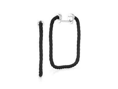 Alor Black cable, 18 karat White Gold, 0.74 total carat weight black Diamonds and 0.14 total carat weight white Diamonds and stainless steel. Impor...
