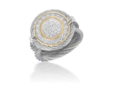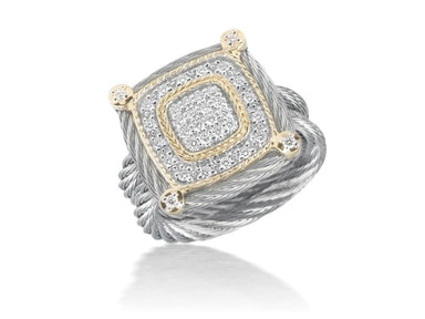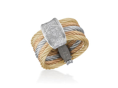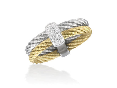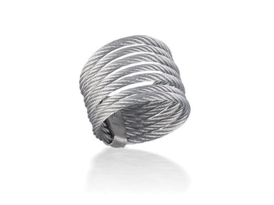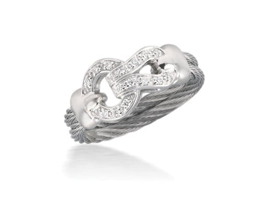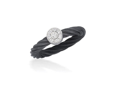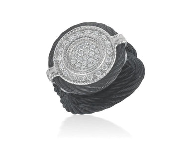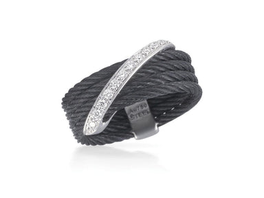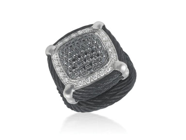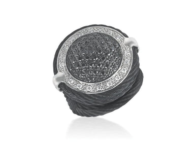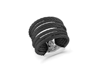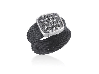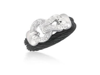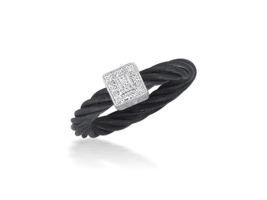 Alor Black cable 3 row 1.6m and 2 row 2.5mm with 18 karat White Gold, 0.35 total carat weight black Diamonds and 0.15 total carat weight white Diamonds and stainless steel. Imported.