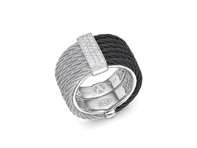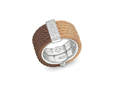 Alor Yellow, rose and bronze cable 6 row 1.6mm, 18 karat Yellow Gold, 0.12 total carat weight Diamonds, stainless steel. Imported.