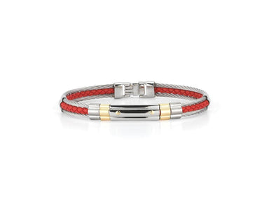 Alor Grey cable red leather and 2 row 2.0mm, 18 karat Yellow Gold with stainless steel. Imported.