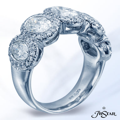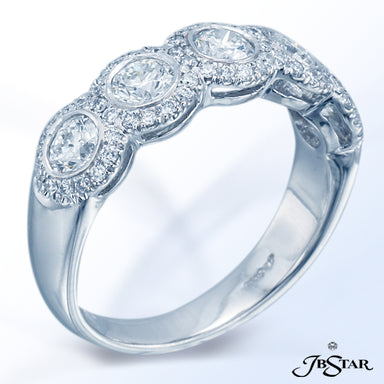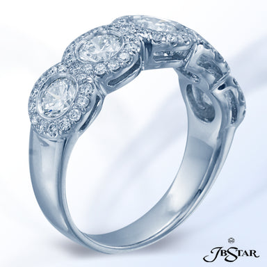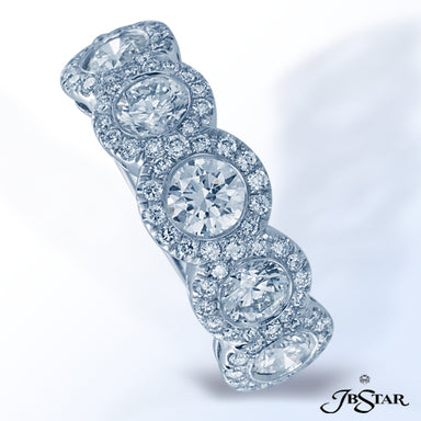 JB STAR STUNNING PLATINUM DIAMOND BAND HANDCRAFTED WITH 5 BRILLIANT ROUND BEZEL-SET DIAMONDS INDIVIDUALLY ENCIRCLED WITH ADDITIONAL ROUND DIAMONDS ...
