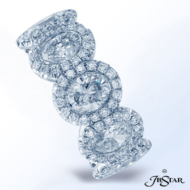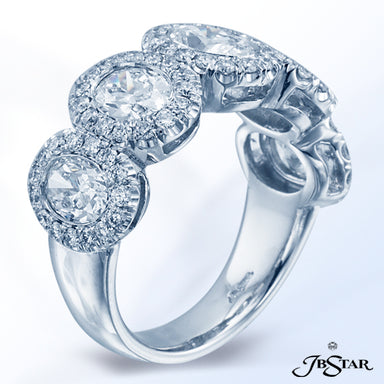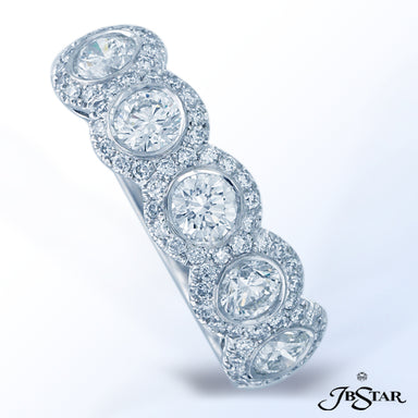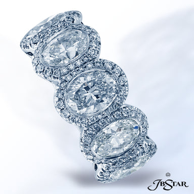 JB STAR PLATINUM DIAMOND BAND HANDCRAFTED WITH 5 PERFECTLY MATCHED OVAL DIAMONDS BEZEL SET AND INDIVIDUALLY EDGED WITH MICRO PAVE DIAMONDS: OVAL 3....