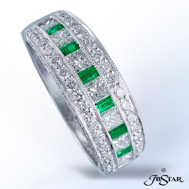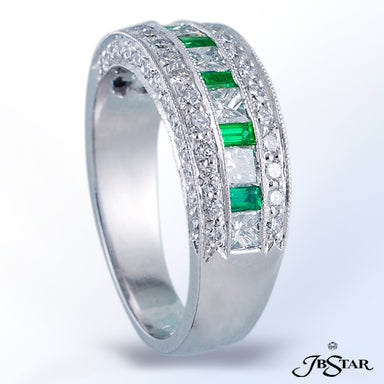 JB STAR PLATINUM EMERALD & DIAMOND BAND DIAMONDS: 1.12 CT. TW. (PRINCESS, & ROUND) EMERALDS: 0.25 CT. TW. (BAGUETTE)