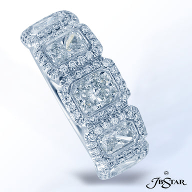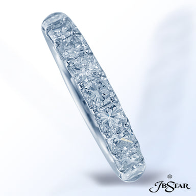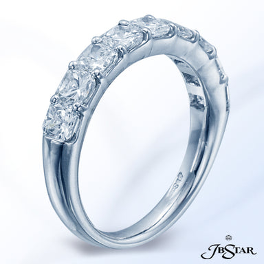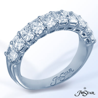 JB STAR PLATINUM BAND HANDCRAFTED WITH 9 PERFECTLY MATCHED RADIANT DIAMONDS IN SHARED-PRONG SETTING. DIAMONDS: RADIANT 1.80 CTW
