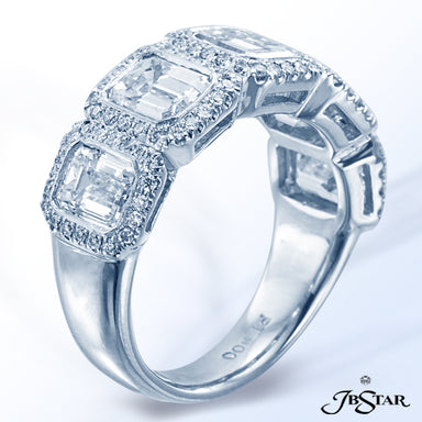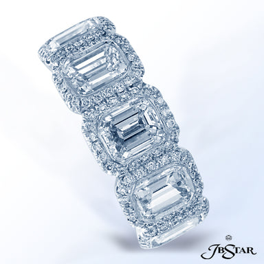 JB STAR PLATINUM DIAMOND BAND HANDCRAFTED WITH 5 PERFECTLY MATCHED EMERALD-CUT DIAMONDS IN BEZEL SETTING, EACH ENCIRCLED WITH MICRO PAVE. DIAMONDS:...