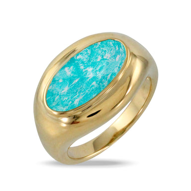 DOVES18K YELLOW GOLD AMAZONITE AND DIAMOND RING