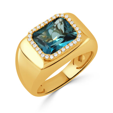 DOVES18K YELLOW GOLD DIAMOND RING WITH LONDON BLUE TOPAZ CENTER STONE