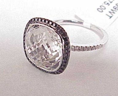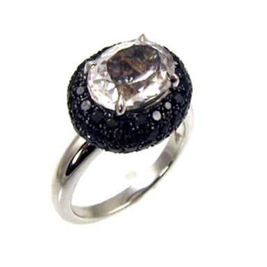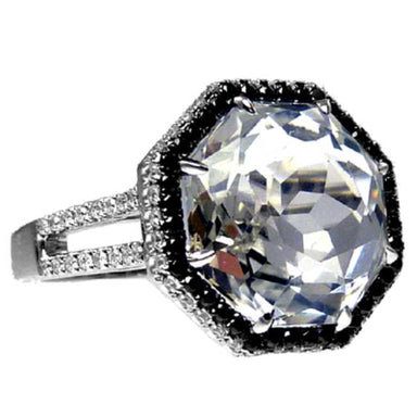 (0)Sparkling white topaz gemstones are meticulously hand-cut, polished and carefully framed in jet black diamonds, bringing the translucent center sto...
