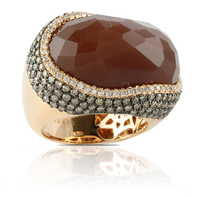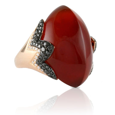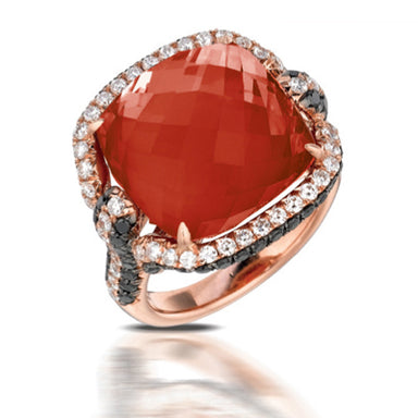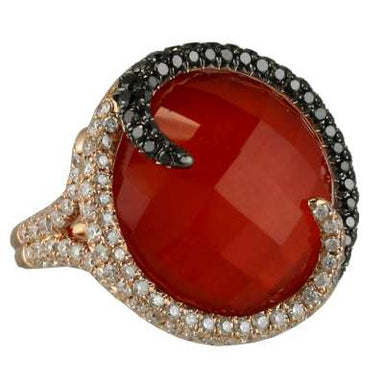 Clear white topaz is set over rich carnelian agate, combining for an unmatched burst of tangerine and ruby-red hues.