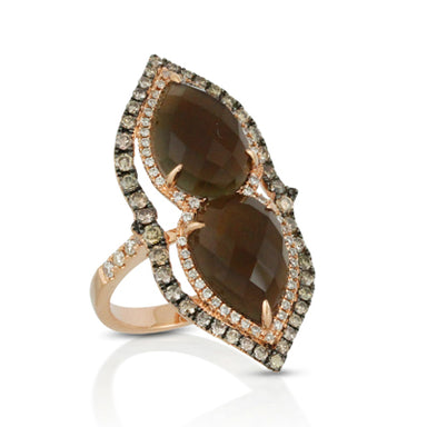 Smoky quartz is layered with shimmering white mother of pearl, for a robust shade that incorporates the warmth and richness of the Earths landscape...