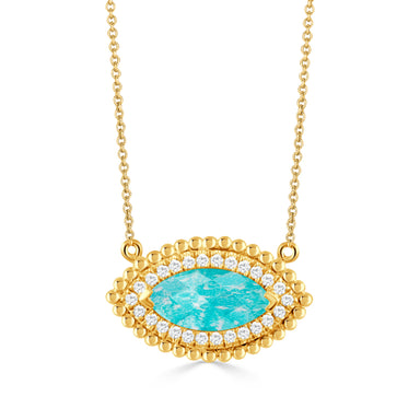 3 DIAMONDS =.03CT CLEAR QUARTZ OVER AMAZONITE = 3.48CT 18 X 12 MM LENGTH: 18 INCHES Doves Paloma jewelry is renowned for its elegance and sophisti...