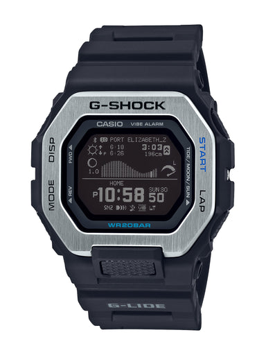 A G-LIDE model that links to smartphones, from the G-SHOCK sports lineup. Tide information and sunrise/sunset times for about 3,300 locations arou...