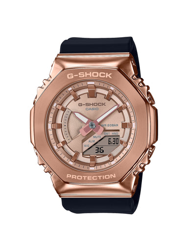 Go slim, clean and bold with a mid-sized black resin band GMS2100PG1A4 in a metal-clad octagonal take on the original iconic design. Forged in sta...