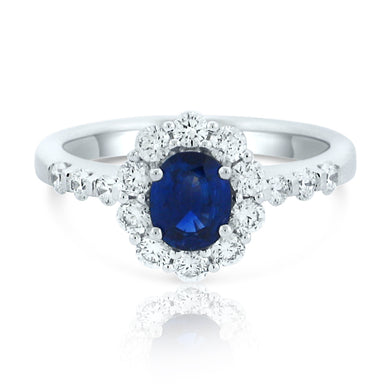 DOVES 18KWG .49 SAPPHIRE AND .41 DIAMOND RING.