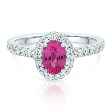 Our Prive' Collection Custom Made Color Stone Ring with 3.91ct A+ Pink Tourmaline surrounded by .88ct VS/ G Natural Diamonds.