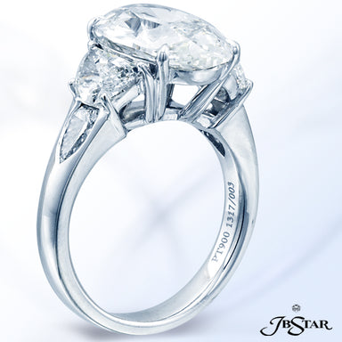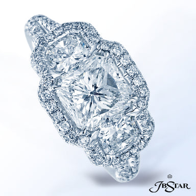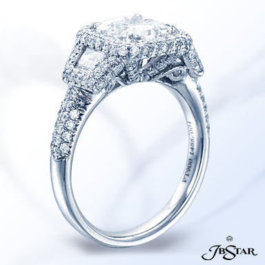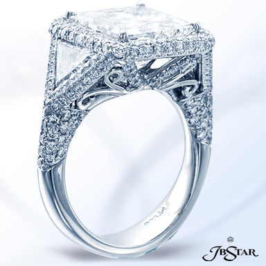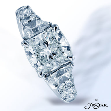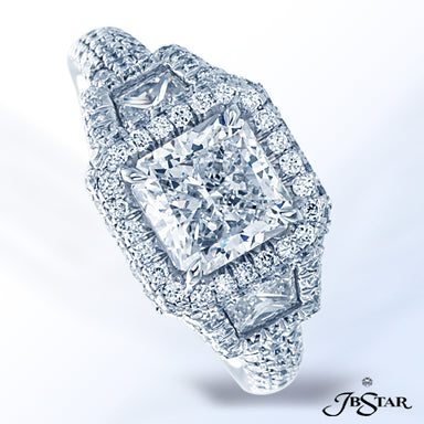 JB STAR BREATHTAKING RADIANT-CUT 3.05 CT NATURAL FANCY PINK DIAMOND IS EMBRACED BY TRAPEZOID AND TAPERED BAGUETTE DIAMONDS AND EXQUISITELY HANDCRAF...