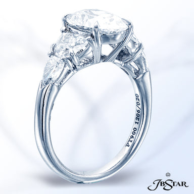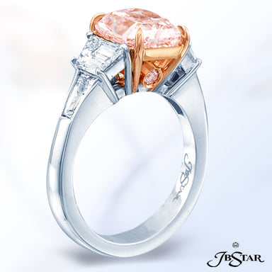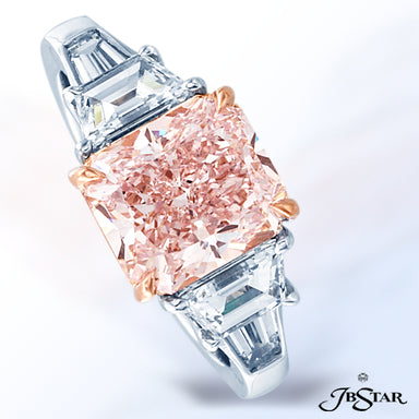 JB STAR BREATHTAKING RADIANT-CUT 3.05 CT NATURAL FANCY PINK DIAMOND IS EMBRACED BY TRAPEZOID AND TAP