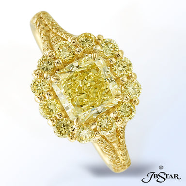 JB STAR NATURAL FANCY YELLOW DIAMOND RING FEATURING A STUNNING 1.31 CT RADIANT FANCY YELLOW CENTER SURROUNDED BY ROUND FANCY YELLOW DIAMONDS WITH A...
