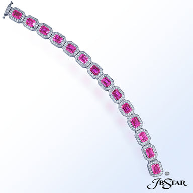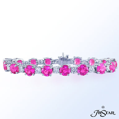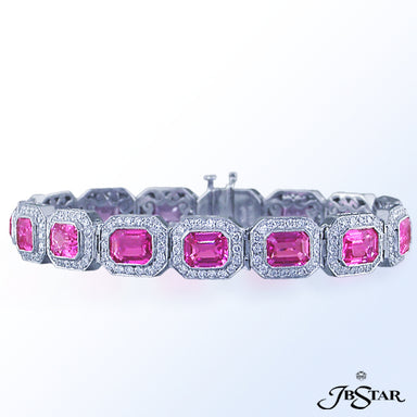JB STAR PINK SAPPHIRE PLATINUM BRACELET WITH 17 STUNNING ROUND PINK SAPPHIRES AND 17 BRILLIANT ROUND