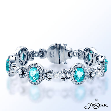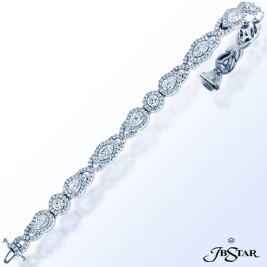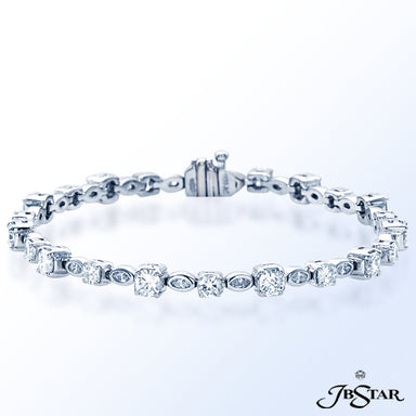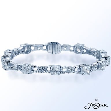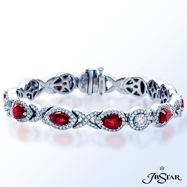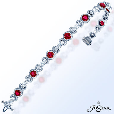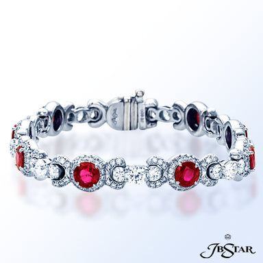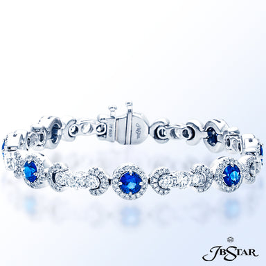 JB STAR PINK SAPPHIRE PLATINUM BRACELET WITH 17 STUNNING ROUND PINK SAPPHIRES AND 17 BRILLIANT ROUND DIAMONDS IN PRONG SETTING. DIAMONDS: 3.01 CT. ...