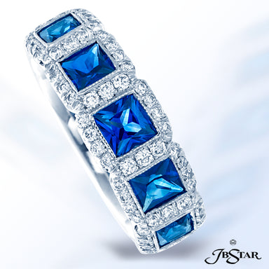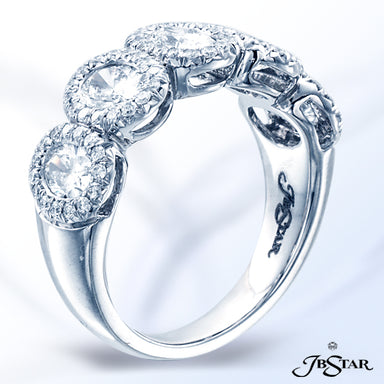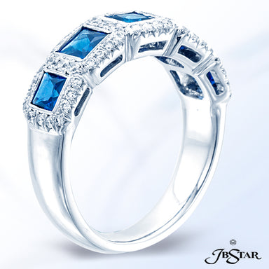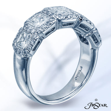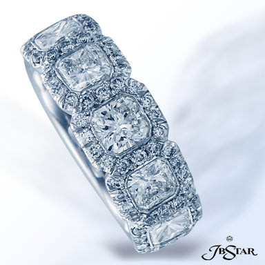 JB STAR PLATINUM DIAMOND WEDDING BAND HANDCRAFTED WITH 5 PERFECTLY MATCHED EMERALD-CUT DIAMONDS IN A SHARED-PRONG SETTING. DIAMONDS: EMERALD-CUT 3....