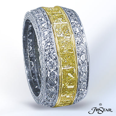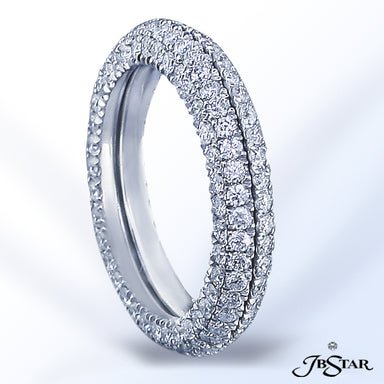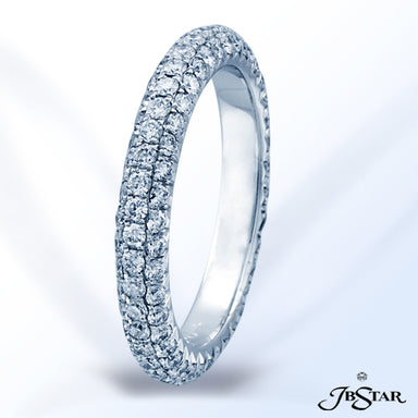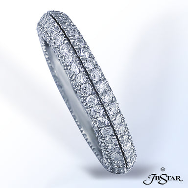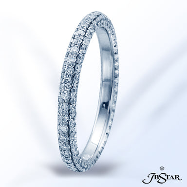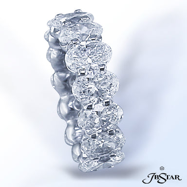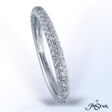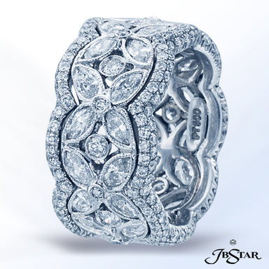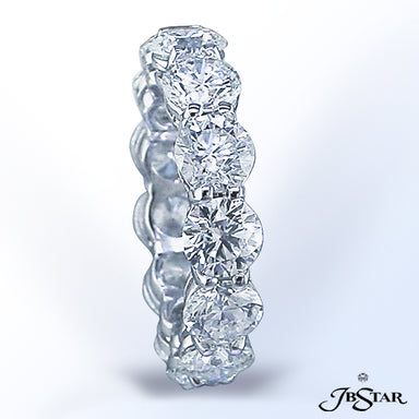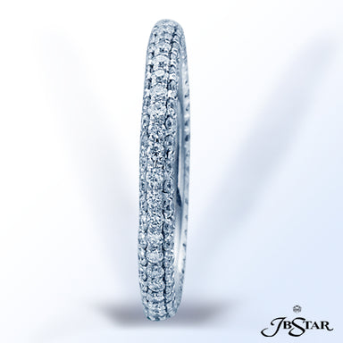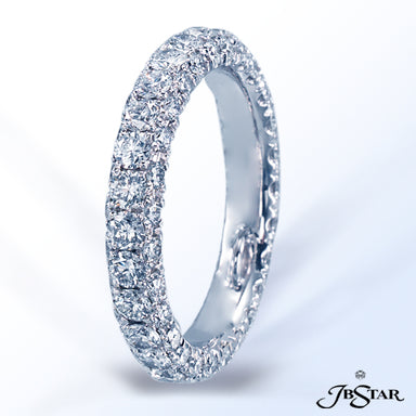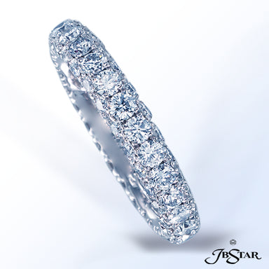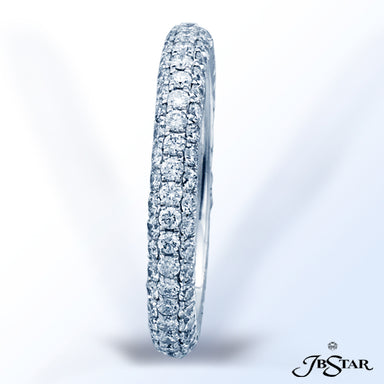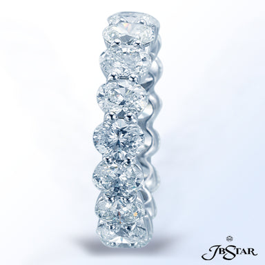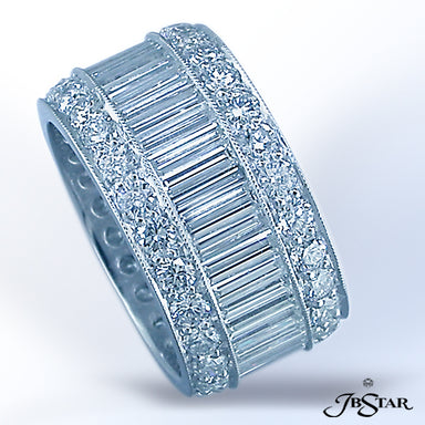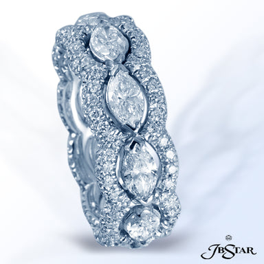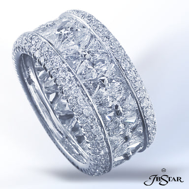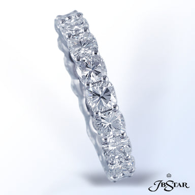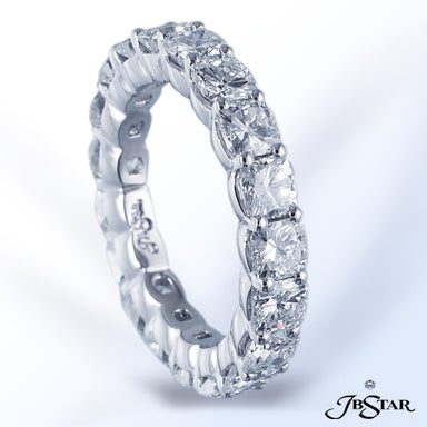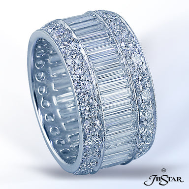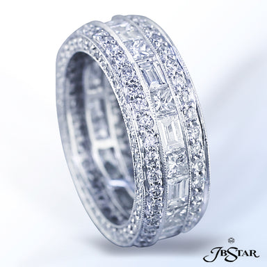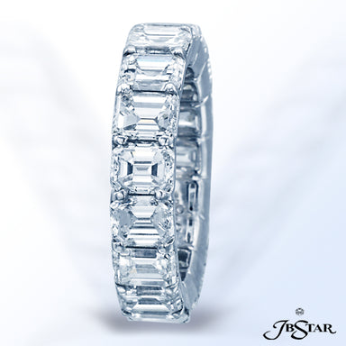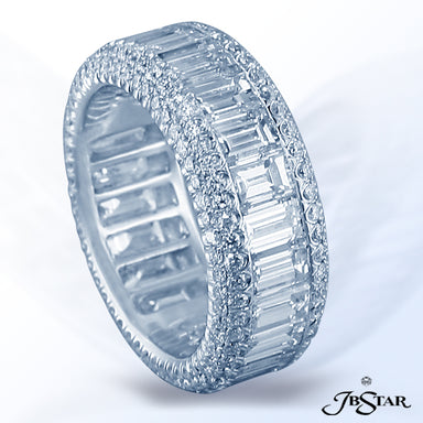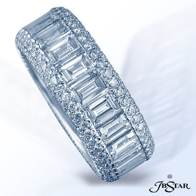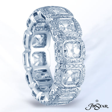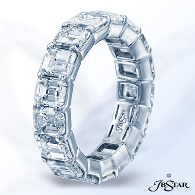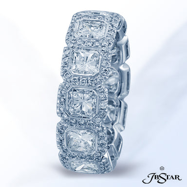 JB STAR PLATINUM DIAMOND ETERNITY BAND HANDCRAFTED WITH 12 RADIANT DIAMONDS IN BEZEL SETTING INDIVIDUALLY SURROUNDED BY PAVE. DIAMONDS: RADIANT 3.8...