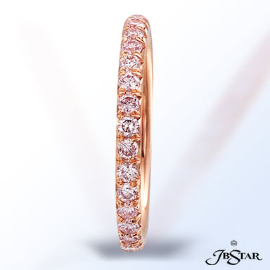 JB STAR PINK DIAMOND ETERNITY BAND HANDCRAFTED WITH ROUND PINK DIAMONDS IN 18KY PINK GOLD SHARED-PRONG SETTING. DIAMONDS: PINK ROUND 0.75CTW