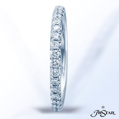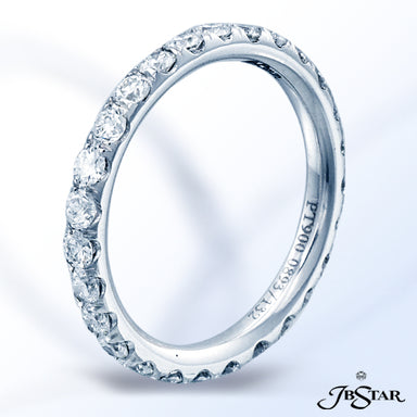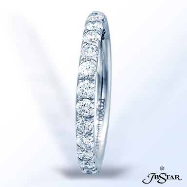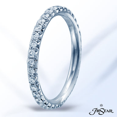 JB STAR PLATINUM DIAMOND ETERNITY BAND WITH 26 CAREFULLY MATCHED ROUND DIAMONDS IN SHARED PRONG SETTING. DIAMONDS: ROUND DIAMONDS 1.10CTW