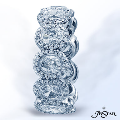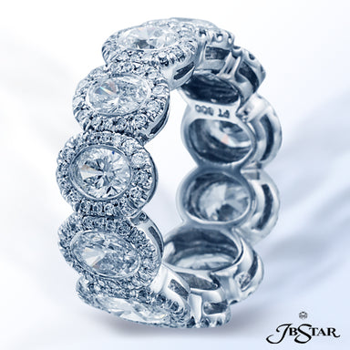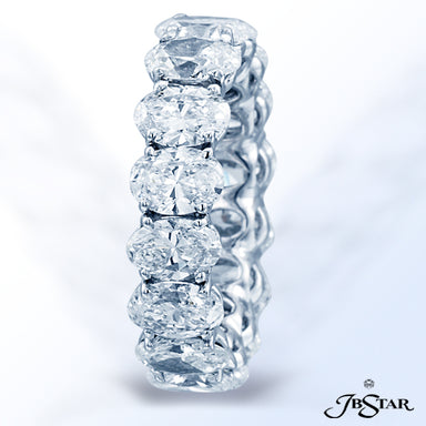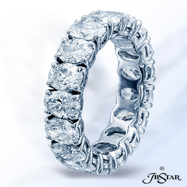 JB STAR PLATINUM DIAMOND ETERNITY BAND WITH 20 CAREFULLY MATCHED OVAL DIAMONDS IN A SHARED PRONG SETTING. DIAMONDS: OVAL 4.11CTW