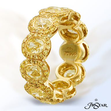 JB STAR NATURAL FANCY YELLOW DIAMOND ETERNITY BAND HANDCRAFTED WITH 11 PERFECTLY MATCHED OVAL FANCY YELLOW DIAMONDS, BEZEL SET AND INDIVIDUALLY ENC...