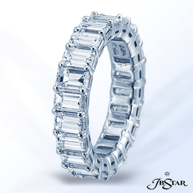 JB STAR STUNNING EMERALD-CUT DIAMOND ETERNITY BAND FEATURING 22 EMERALD-CUT DIAMONDS IN A SHARED PRONG SETTING. HANDCRAFTED IN PLATINUM. DIAMONDS: ...