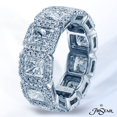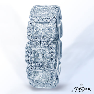 JB STAR DIAMOND ETERNITY BAND IN A STUNNING DISPLAY OF 11 BEZEL-SET RADIANT DIAMONDS EACH SURROUNDED BY PAVE, HANDCRAFTED IN PLATINUM DIAMONDS: RAD...