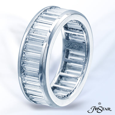 JB STAR BEAUTIFUL PLATINUM AND DIAMOND ETERNITY BAND, CHANNEL SET WITH 38 BAGUETTE DIAMONDS.DIAMON