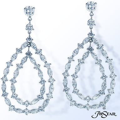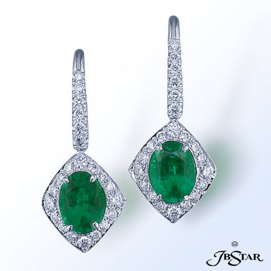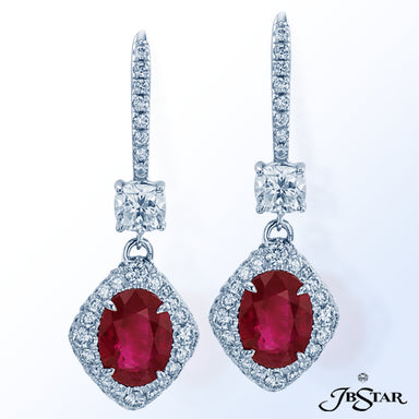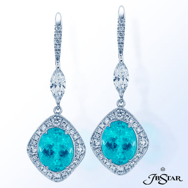 JB STAR PLATINUM SAPPHIRE AND DIAMOND EARRINGS WITH 5.05 CTW OVAL BLUE SAPPHIRES SUSPENDED FROM PRIN