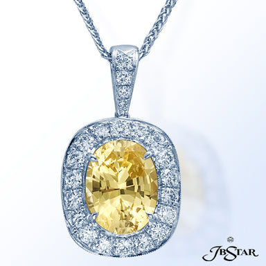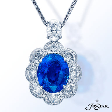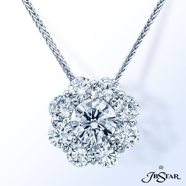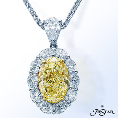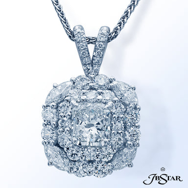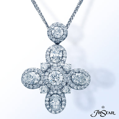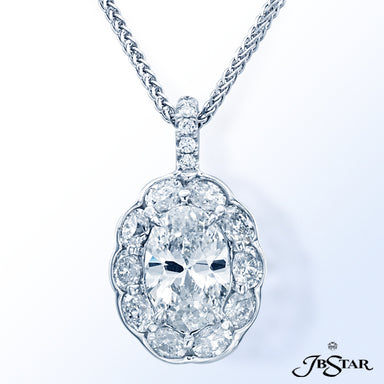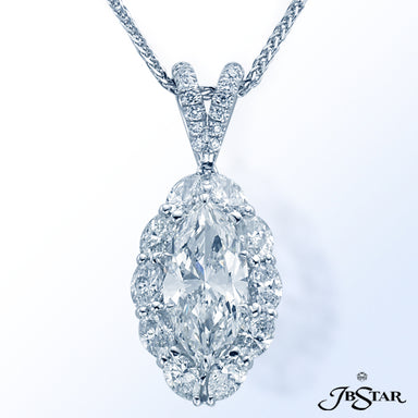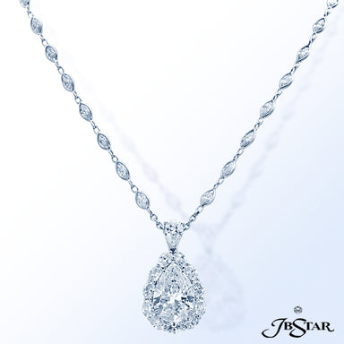 JB STAR DIAMOND PENDANT FEATURING A 7.636 CT PEAR SHAPE DIAMOND ENCIRCLED BY 11 PERFECTLY MATCHED OVAL DIAMONDS IN PLATINUM SETTING. CHAIN OF 45 MA...